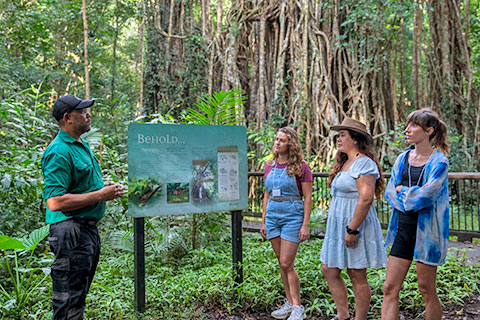Adventures In Nature – Our full day adventure from Cairns includes the opportunity to connect with Traditional Owners, proud descendants of the Yidinji and Mbabaram peoples, to learn more about their rainforest culture at the magnificent Cathedral Fig Tree, as well as taking you to some of our favourite places on the hinterlands and Tablelands. Our half day tour allows for a sleep in and takes you away to slide down the beautiful Josephine Falls and splash around at the stunning Babinda Boulders (also included in the full day itinerary).