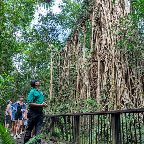 Adventures In Nature – Our full day adventure from Cairns includes the opportunity to connect with Traditional Owners, proud descendants of the Yidinji and Mbabaram peoples, to learn more about their rainforest culture at the magnificent Cathedral Fig Tree, as well as taking you to some of our favourite places on the hinterlands and Tablelands. Our half day tour allows for a sleep in and takes you away to slide down the beautiful Josephine Falls and splash around at the stunning Babinda Boulders (also included in the full day itinerary).