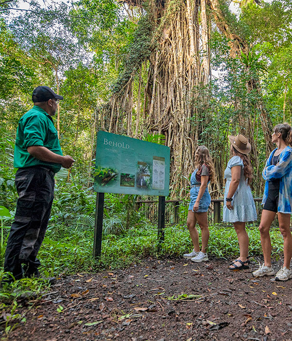 Comfortable Coach Transfers, Tour with Traditional Owners at the Cathedral Fig Tree, Lunch, Interactive Commentary with our Rainforest Guides.